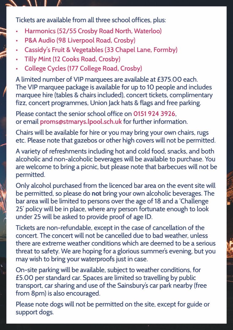 This fantastic concert is one of the real highlights of the St Mary’s school calendar and takes place at the St. Mary’s College Games Field, Blundell Park, on Saturday 14th July 2018 at 7.30pm (Gates open 6pm).